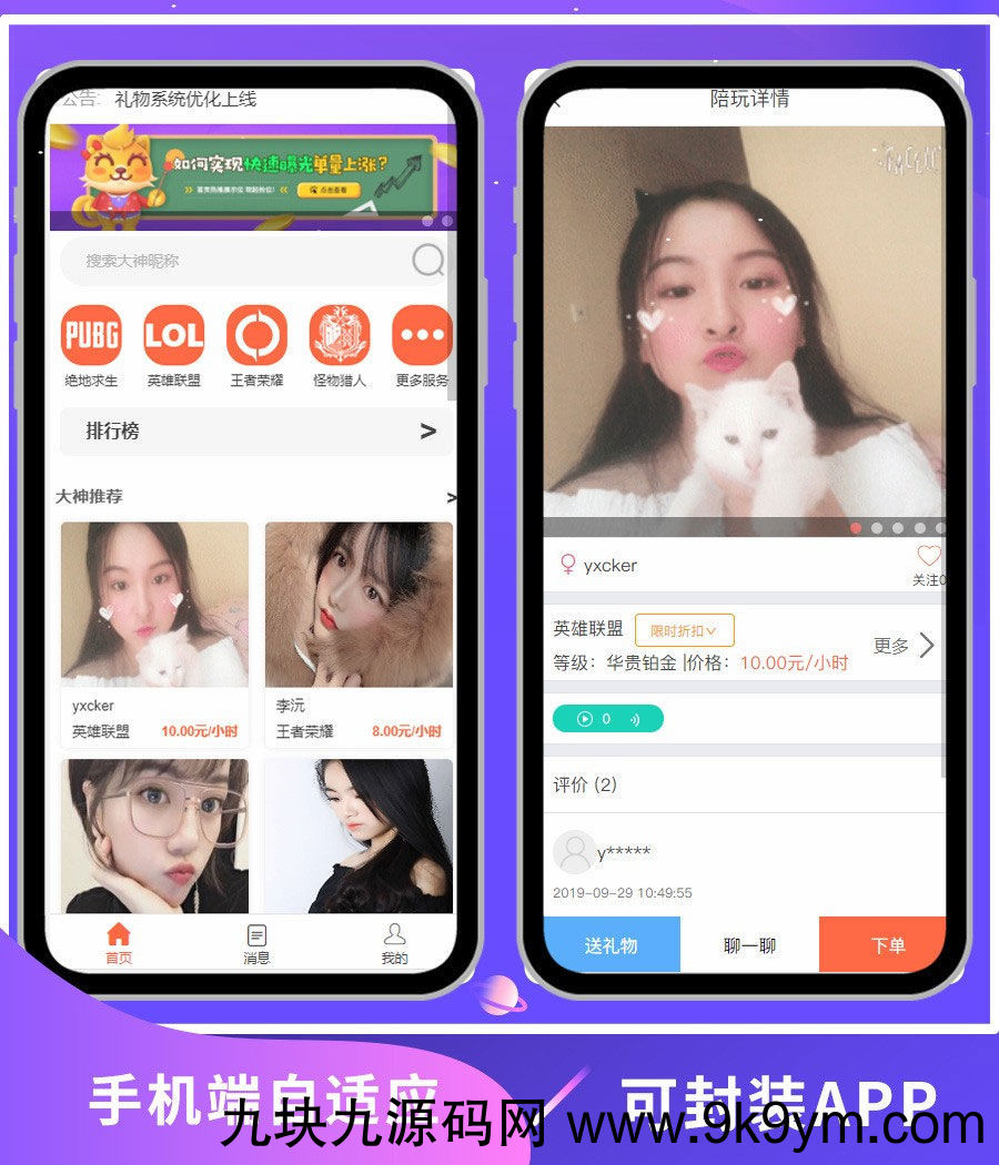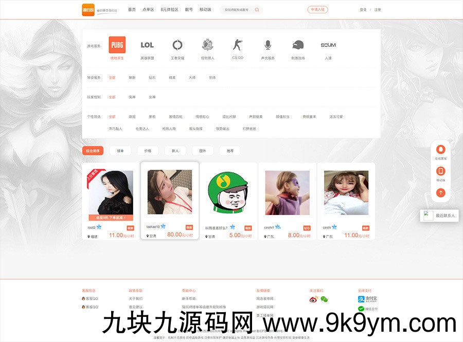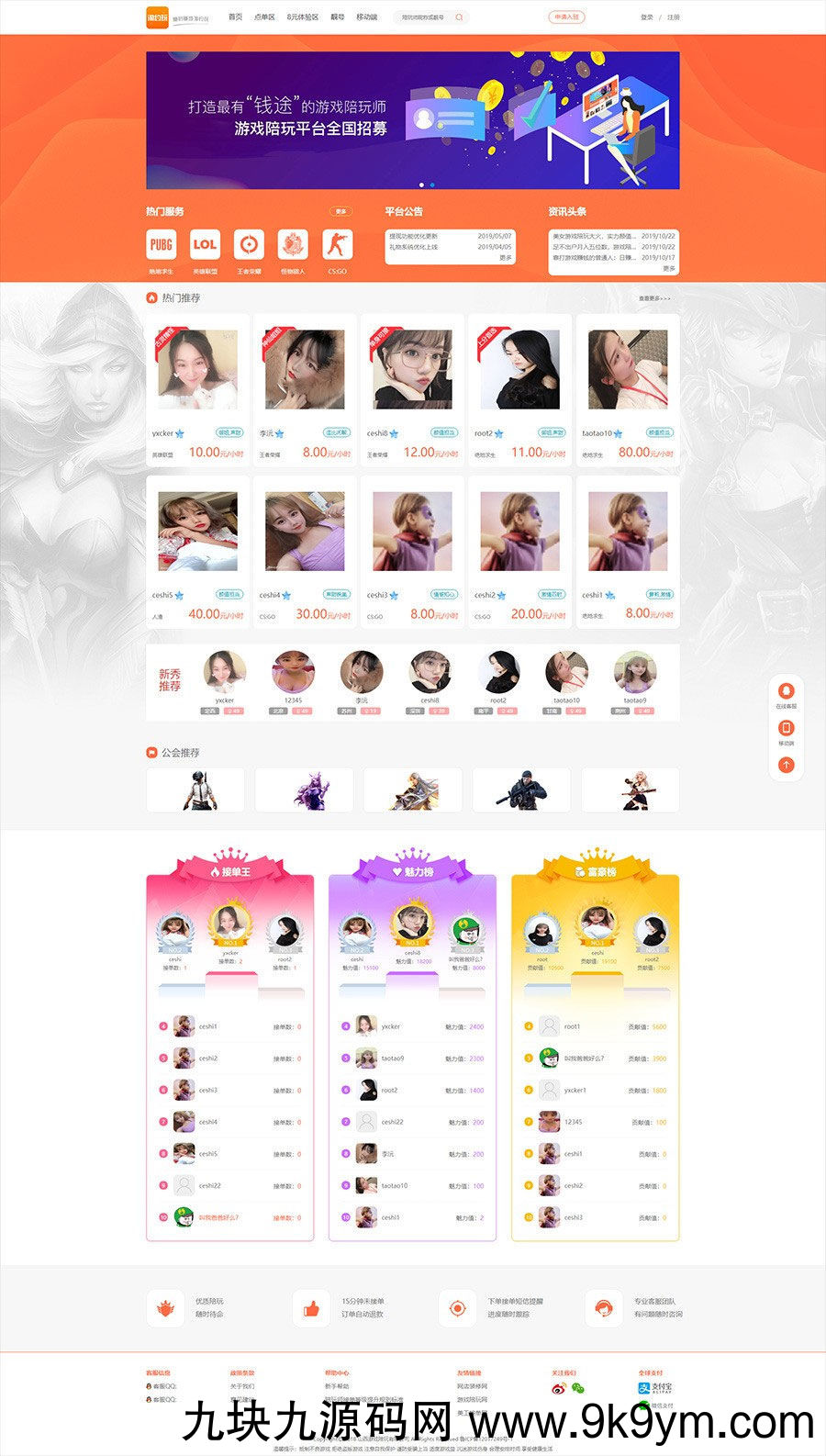 PHP游戏陪玩平台源码美女约玩系统 WAP手机端自适应