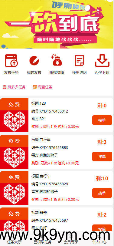 ThinkPHP帮忙砍价任务赚钱源码 可封装APP