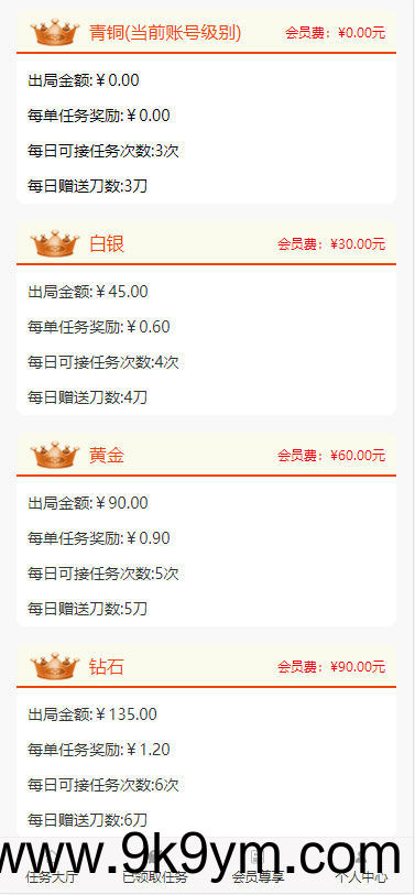 程序为ThinkPHP3.23框架。发布任务付费开通权限,支持等级购买,不同等级可以设置返佣和领取任务数。支持会员等级购买,三级返佣。