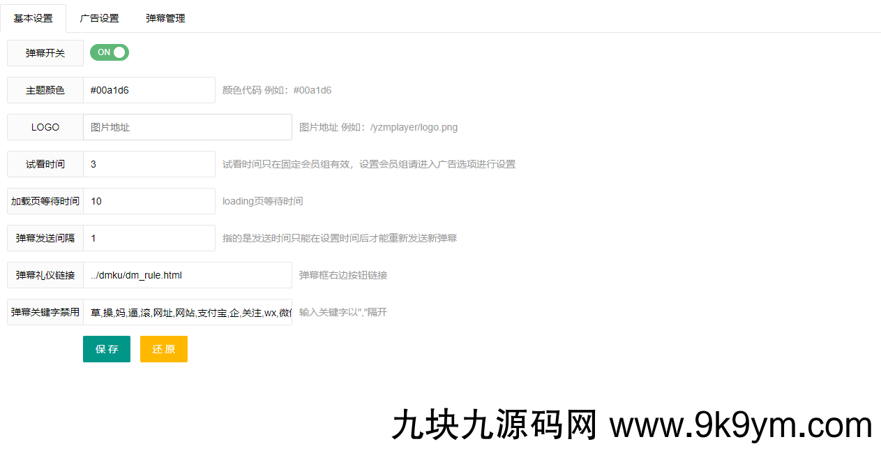 播放器功能可后台设置