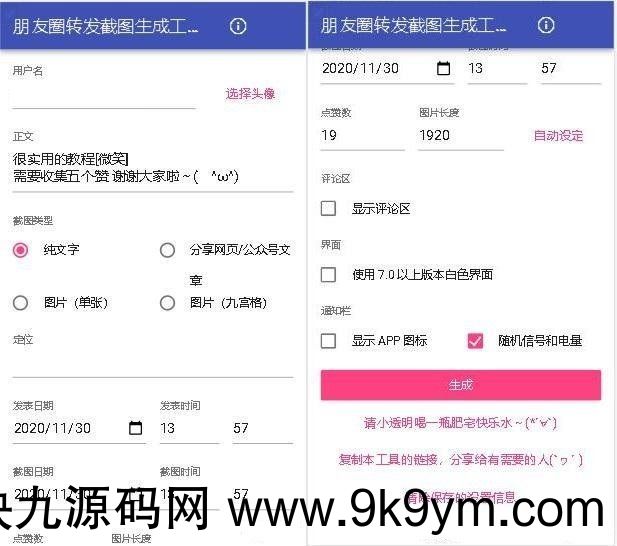 微信朋友圈截图模拟器源码,微信朋友圈装逼生成器大全,上传服务器即可使用!装逼必备!有条件的可以打包成APP
