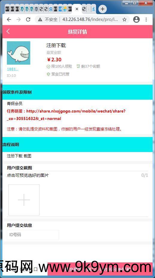 用户可以接受app下载类、注册登录类、微信关注类和文章挂机阅读类等等任务具体的任务要求是根据发布任务的人决定的,自由灵活,且简单易用!短信对接短信宝,支付对接平安夜码支付