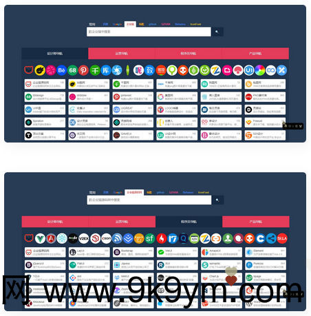 源码是扒996导航网静态页面,趴下来清理了里面杂乱广告与一些无关东西;源码分为四个页面:设计师导航、运营导航、程序员导航、产品导航站内导航内容已经充实,完善了基本工作中常用的设计 产品等网站,非常方便上班族的使用!