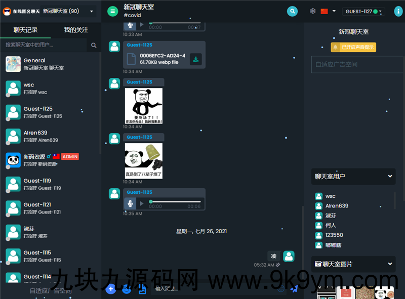 HP匿名在线聊天室系统源码 自适应PC+WAP端 可发语音、图片