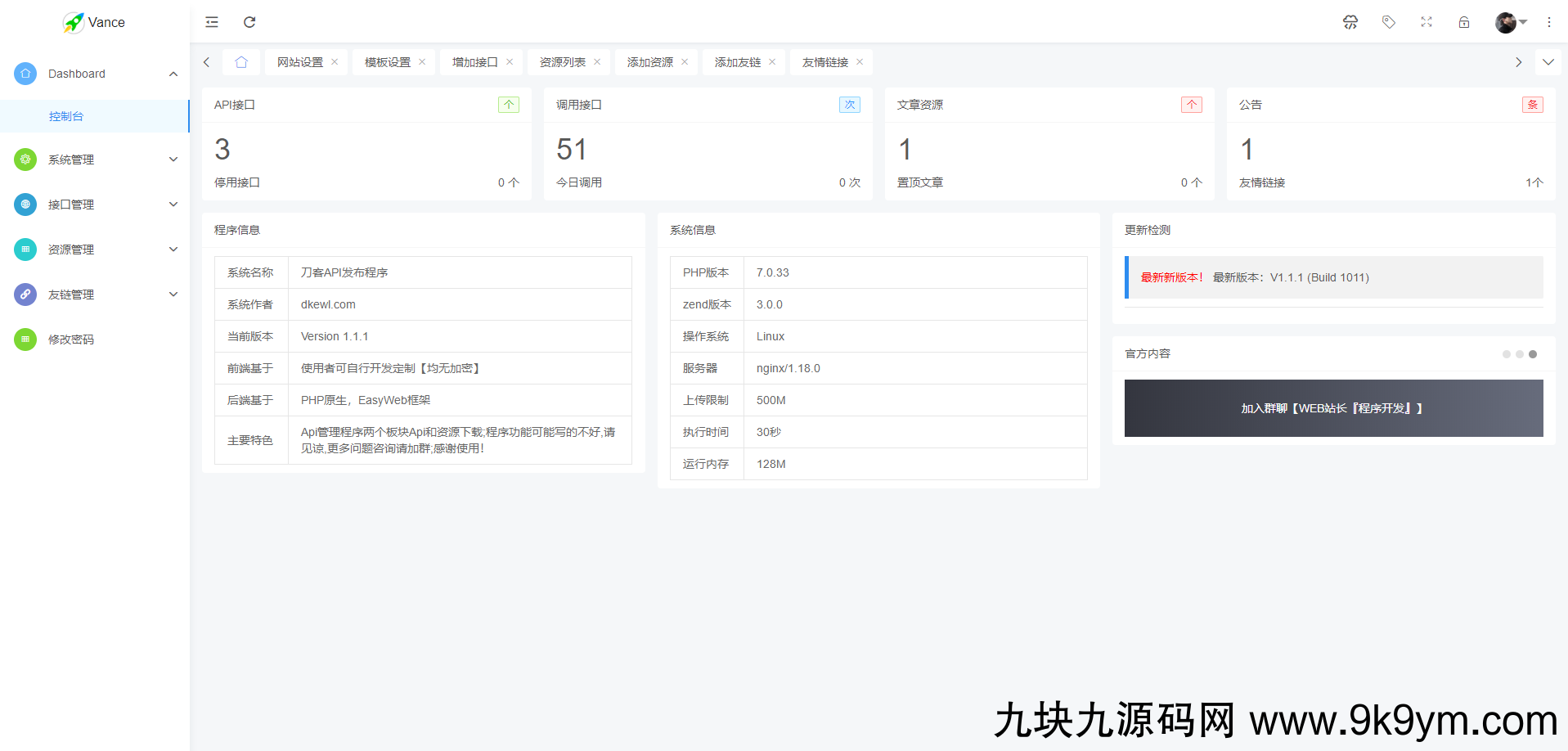 2023全新API接口管理系统PHP程序源码 基于PHP原生,EasyWeb框架