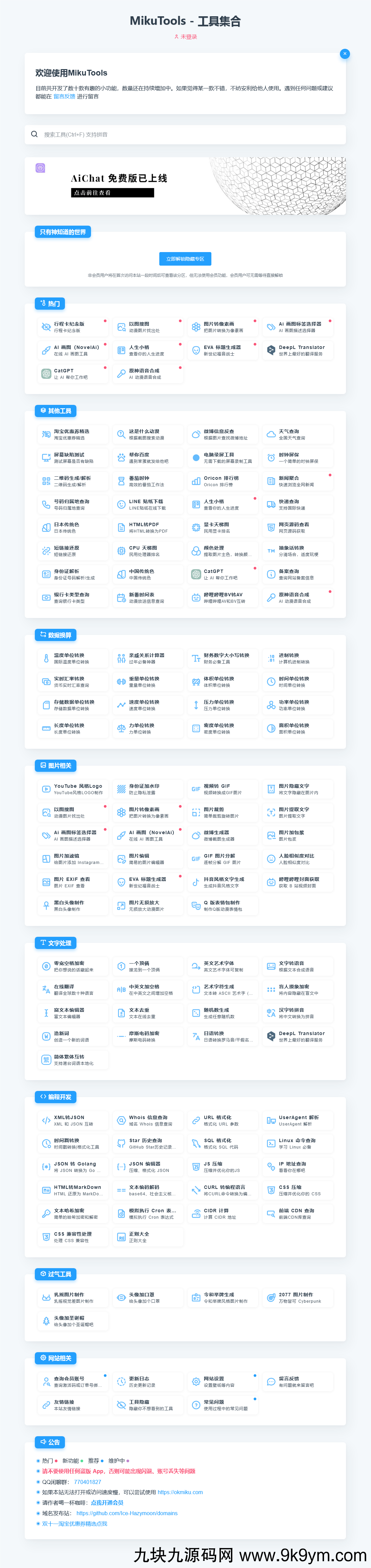 MikuTools是一个使用Vue全家桶和Nuxt.js构建的工具类网站。它提供了许多有用的工具,例如文本加密、图片处理、常用数据转换等等