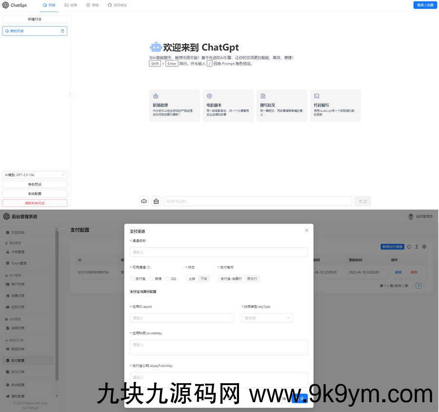一款可商业化的ChatGpt Web源码支持AI绘画等多功能,使用React搭建的一款可商业化的ChatGpt Web应用,支持接入支付宝当面付及易支付