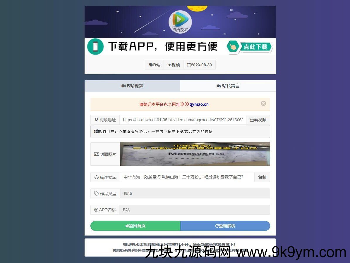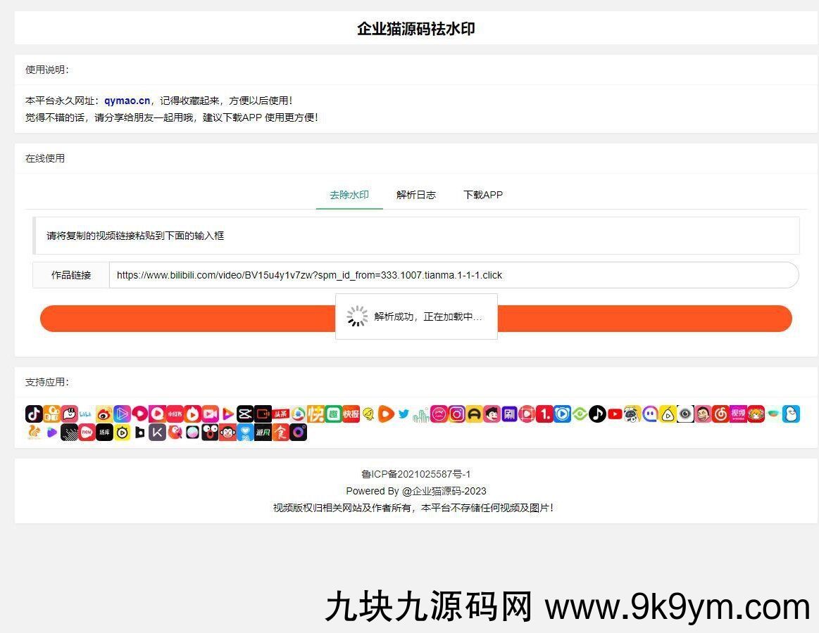 支持几十种平台抖音快手小红书全新去水印系统网站源码