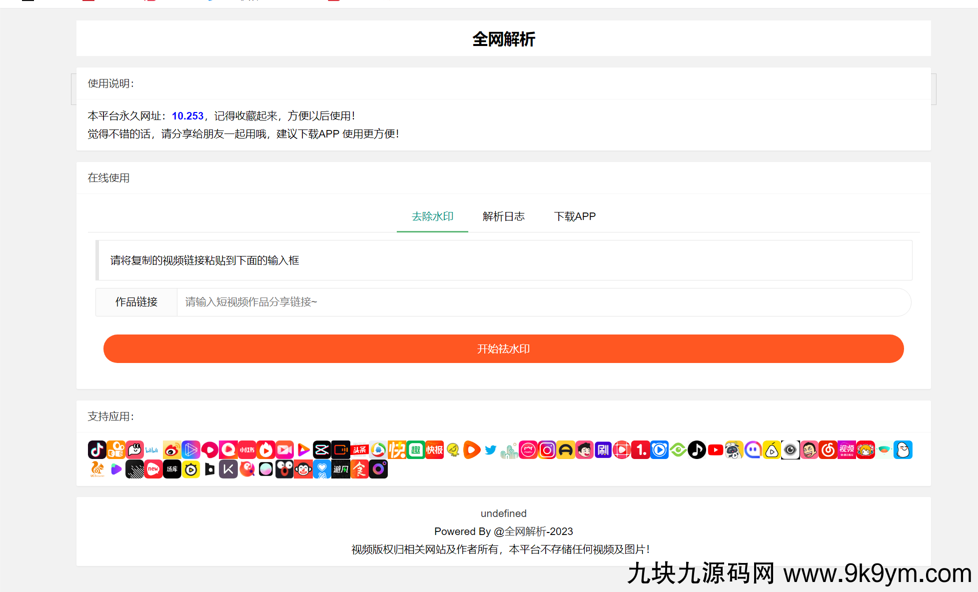 全新抖音快手小红书去水印系统网站源码 | 支持几十种平台