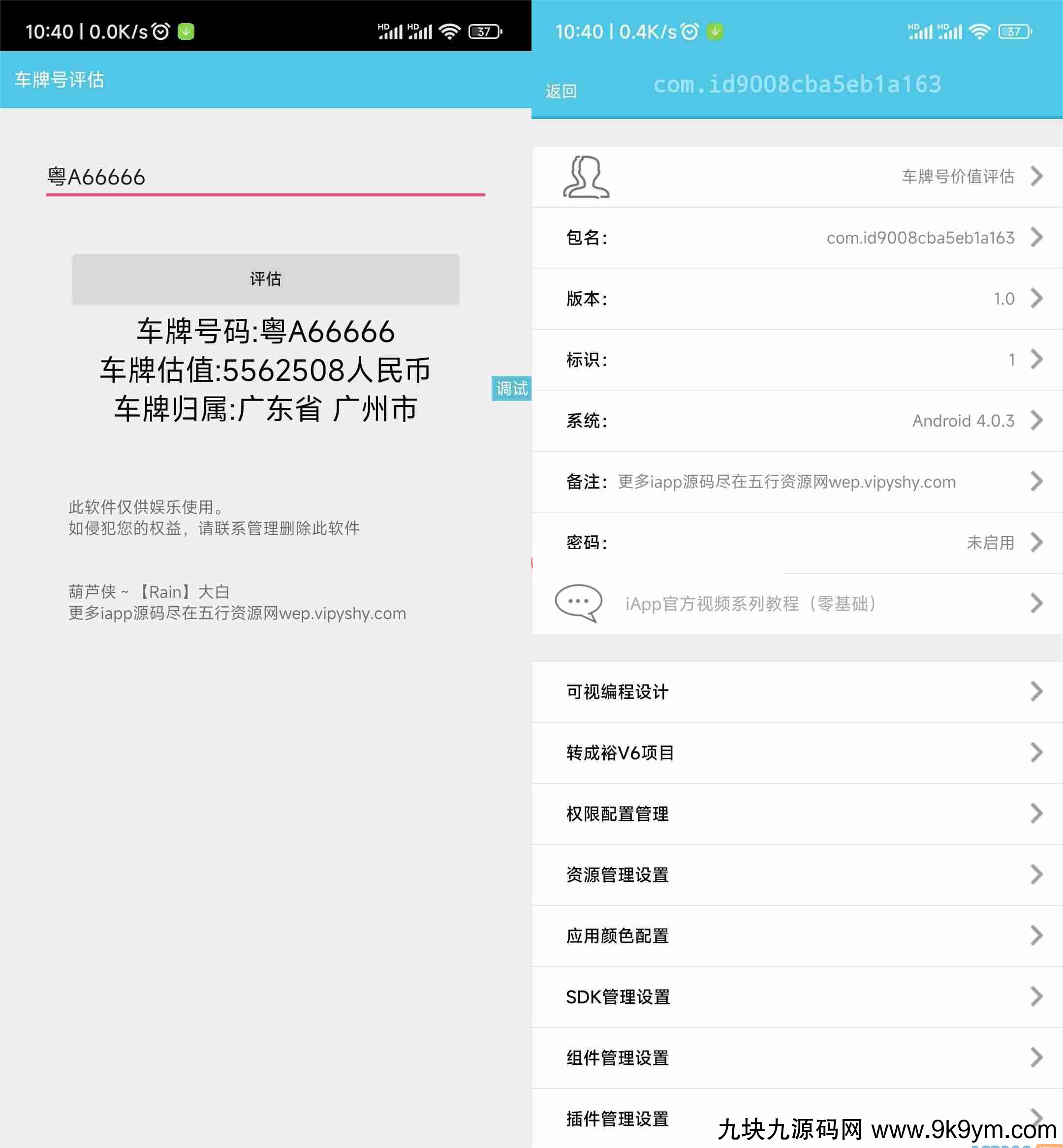 iApp车牌号价值评估源码,是一款基于车主之家的查询api接口的应用程序。该应用程序提供了车牌号的归属地以及价值评估两个功能,帮助用户快速了解车牌的基本信息和价值水平。