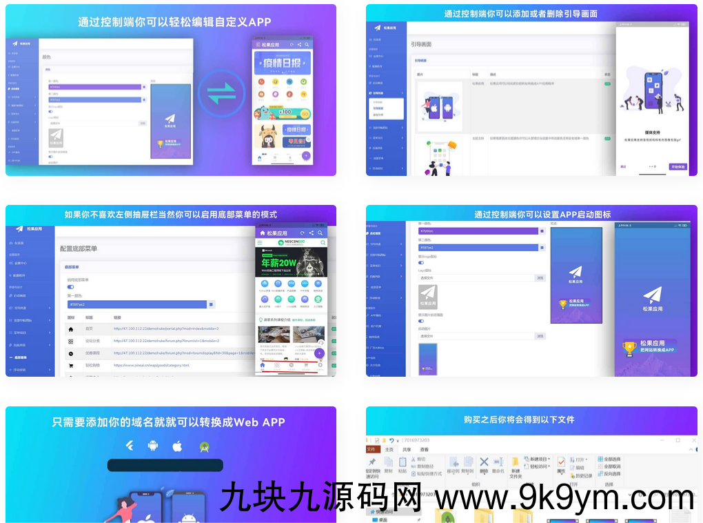 此外,我们还提供了APP的控制端,您可以通过控制端来设置APP的颜色、添加APP图标和菜单栏目。您可以添加或编辑底部菜单或悬浮按钮等内容,当用户点击相关栏目时,会跳转到您设置的相关链接。