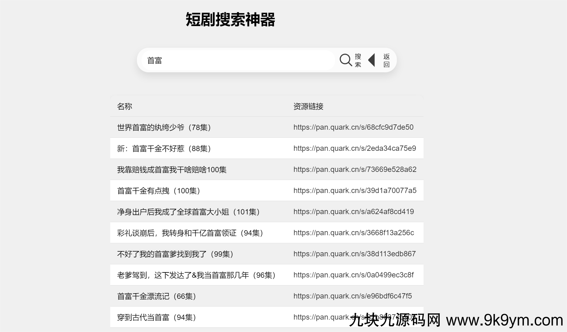 搜索神器源码,自带本地数据库500+数据,共有6000+短剧视频,与短剧猫一样。