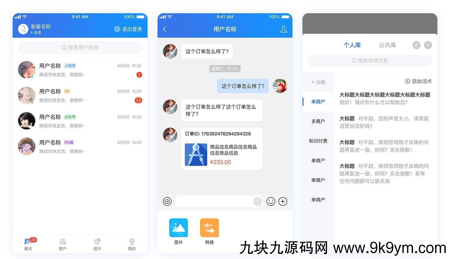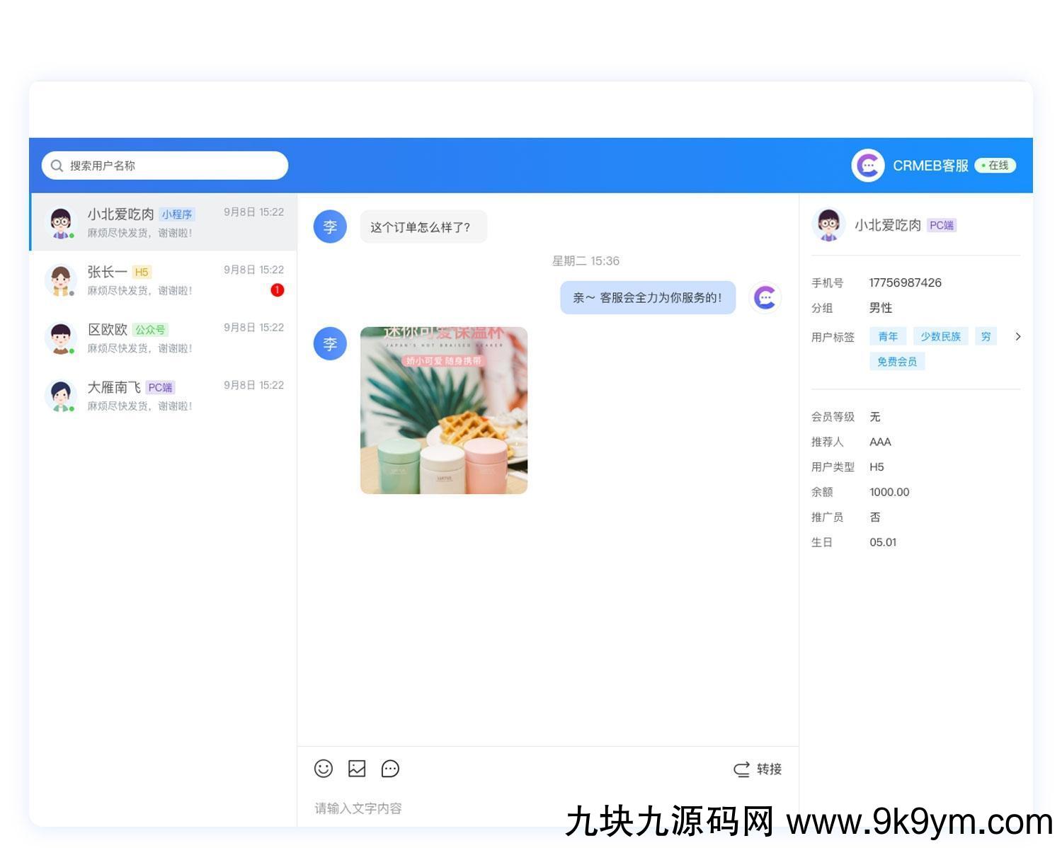 本系统(CRMChat)是采用Swoole4+Tp6+Redis+Vue+Mysql开发的独立高性能客服系统,客服系统用户端支持Pc端、移动端、小程序、文章中接入客服,利用超链接、网页内嵌、二维码、定制对接等方式让网上所有通道都可以快速通过本系统联系到商家,商家端支持Pc端、移动端(App)随时随地接收到用户的各种咨询,商家可以添加话术库、也可以对用户进行分组、加标签、加备注进行管理,是一款互联网链接商家的一个桥梁,也是商家客户管理的工具,本开源项目遵循最开放的木兰协议,可以随意使用。