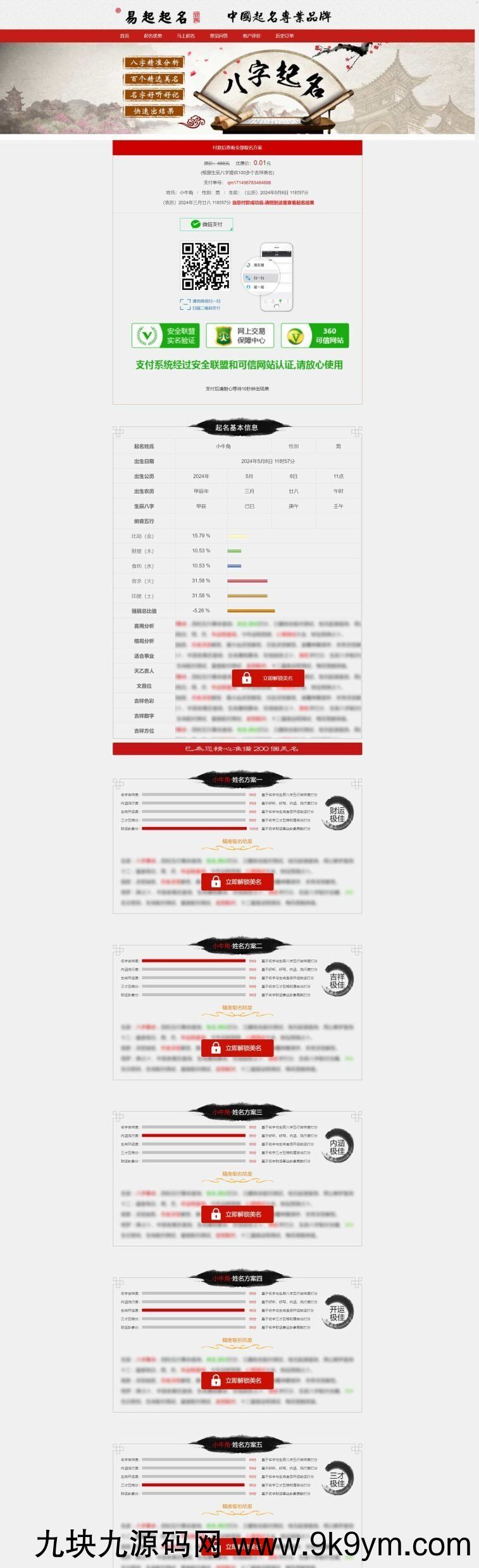 特点:免注册,免登录,可直接在线起名,并且完成付款。