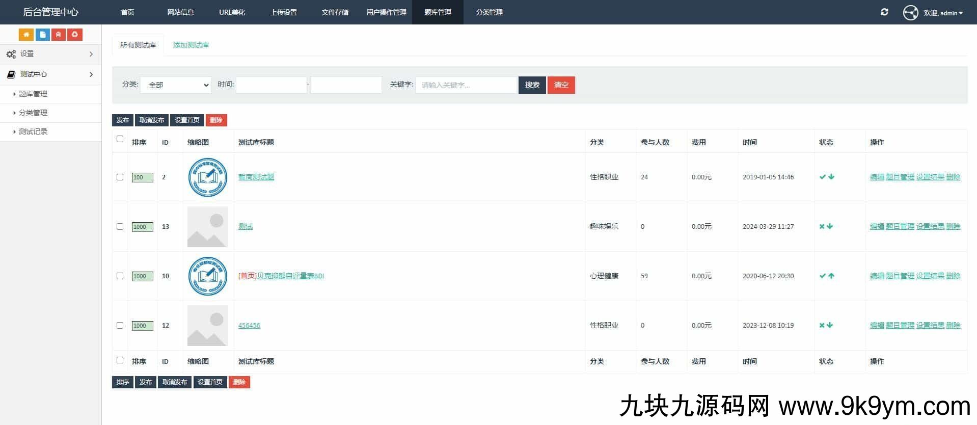 4、后台题库:10套题库,具体请看下面截图