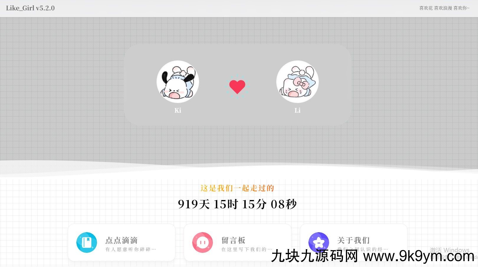 LikeGirl是一款情侣恋爱主题源码,使用php语言编写,适用于情侣纪念恋爱过程。