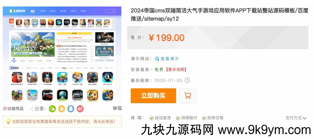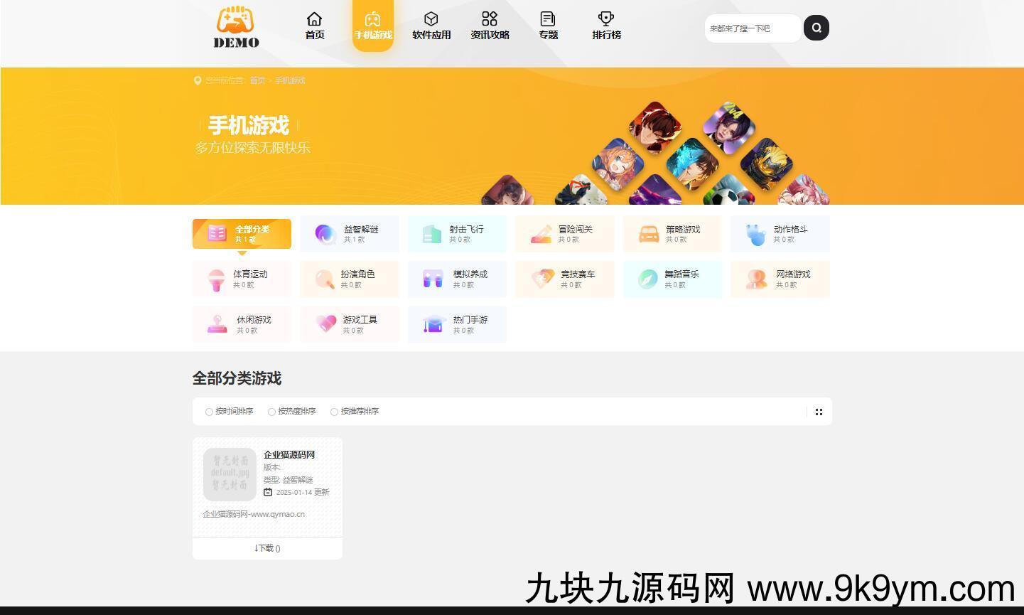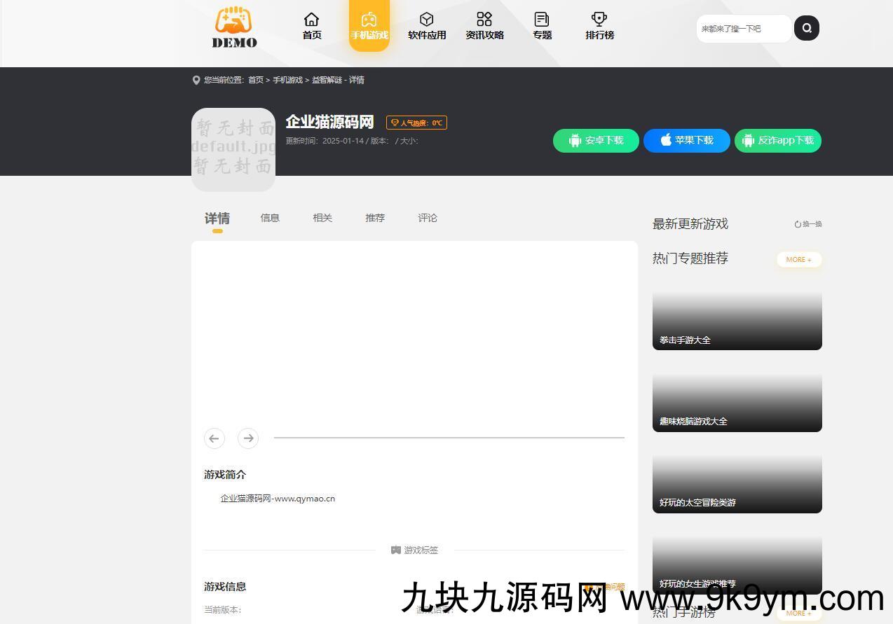 帝国CMS7.5手游游戏应用软件APP下载站整站源码模板/百度推送/sitemap/同步生成