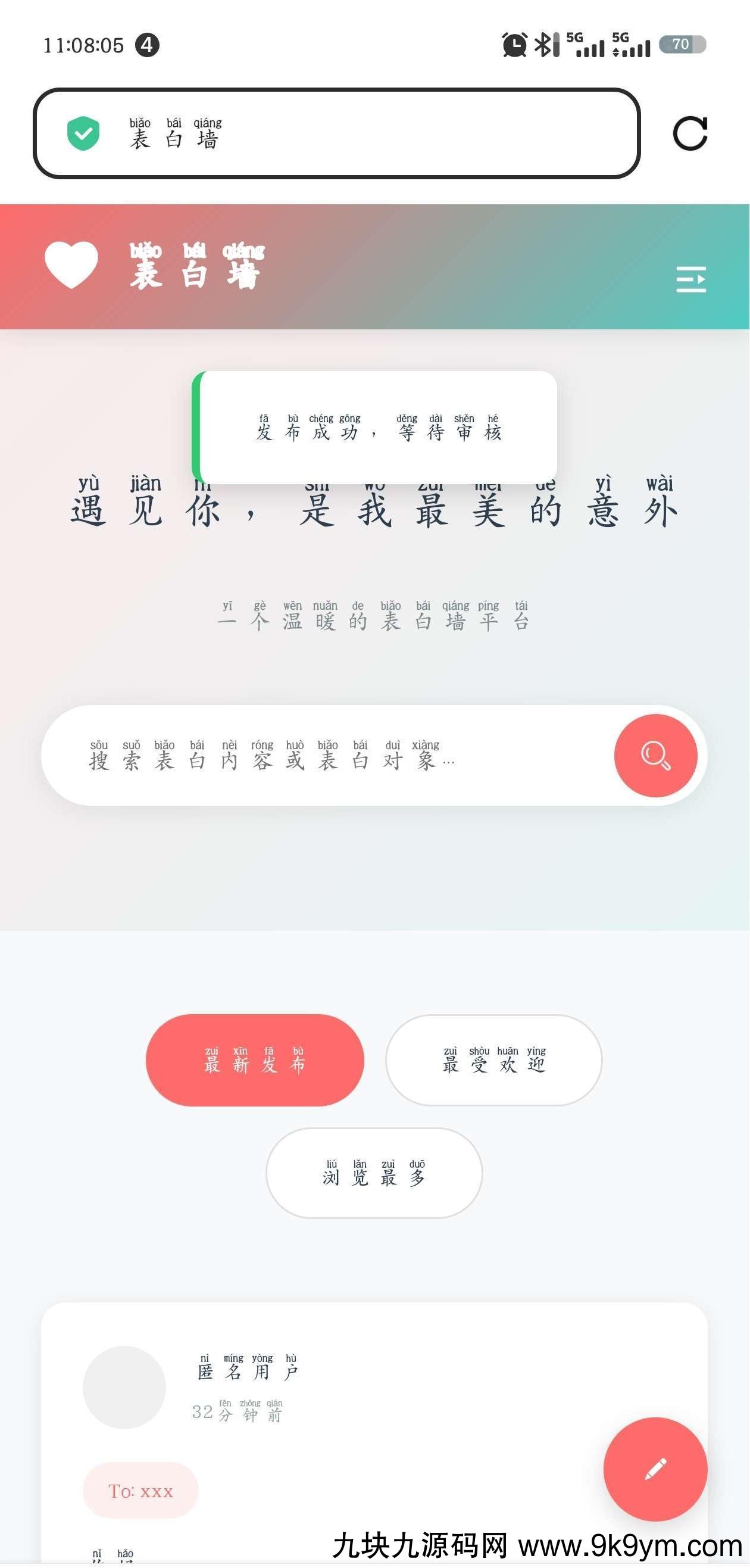 闲来无事来溜达一圈,于是对作者(离愁Lico)发布的表白墙源码进行了一番改动,也是增加了审核功能,后台入口等。