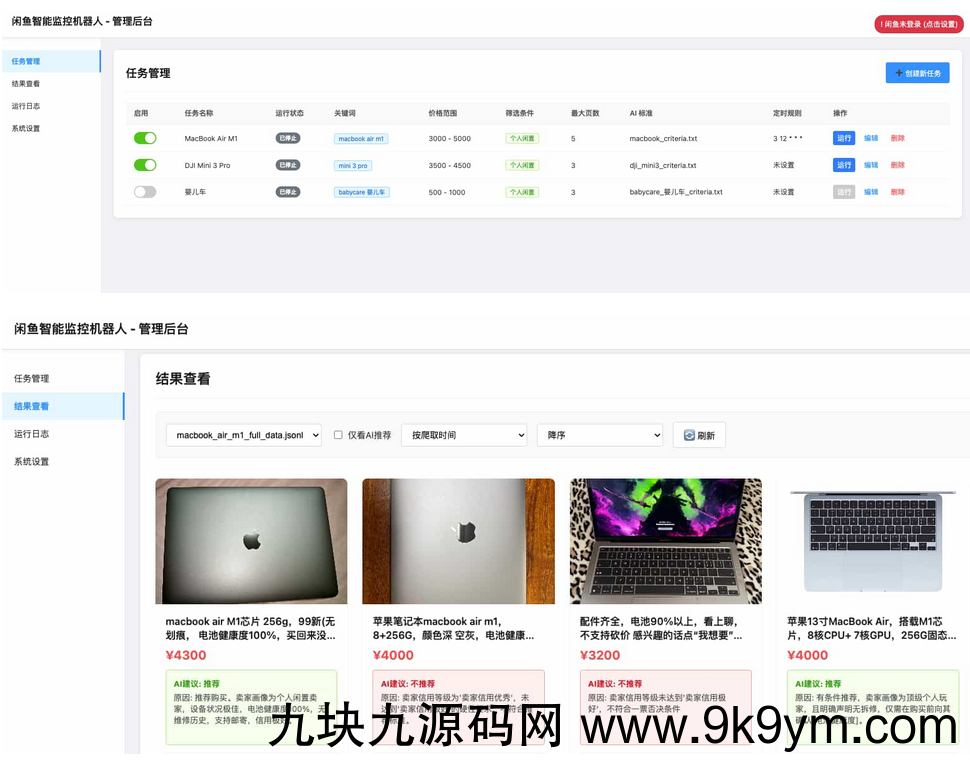 高度可定制: 每个监控任务均可配置独立的关键词、价格范围、筛选条件和AI分析指令 (Prompt)。