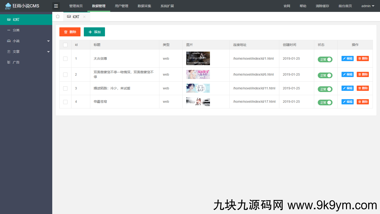 11、小说管理功能