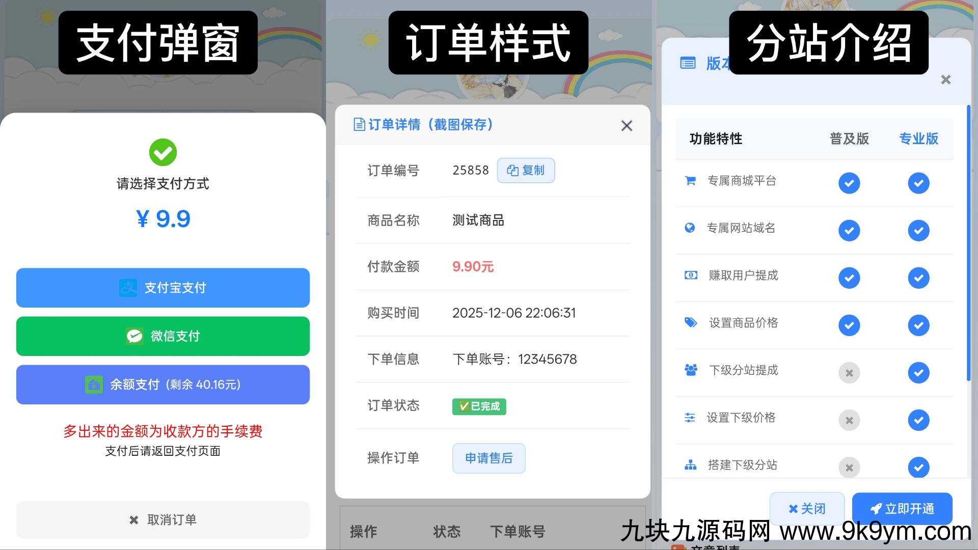 彩虹云商城花粥沉梦云商城前端用户后台美化版