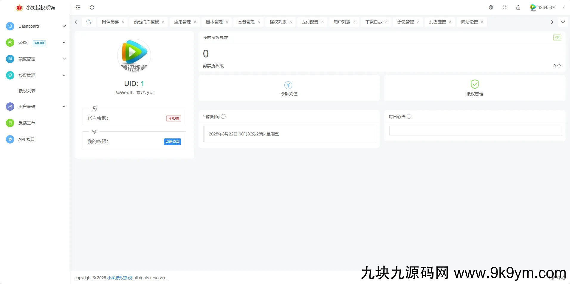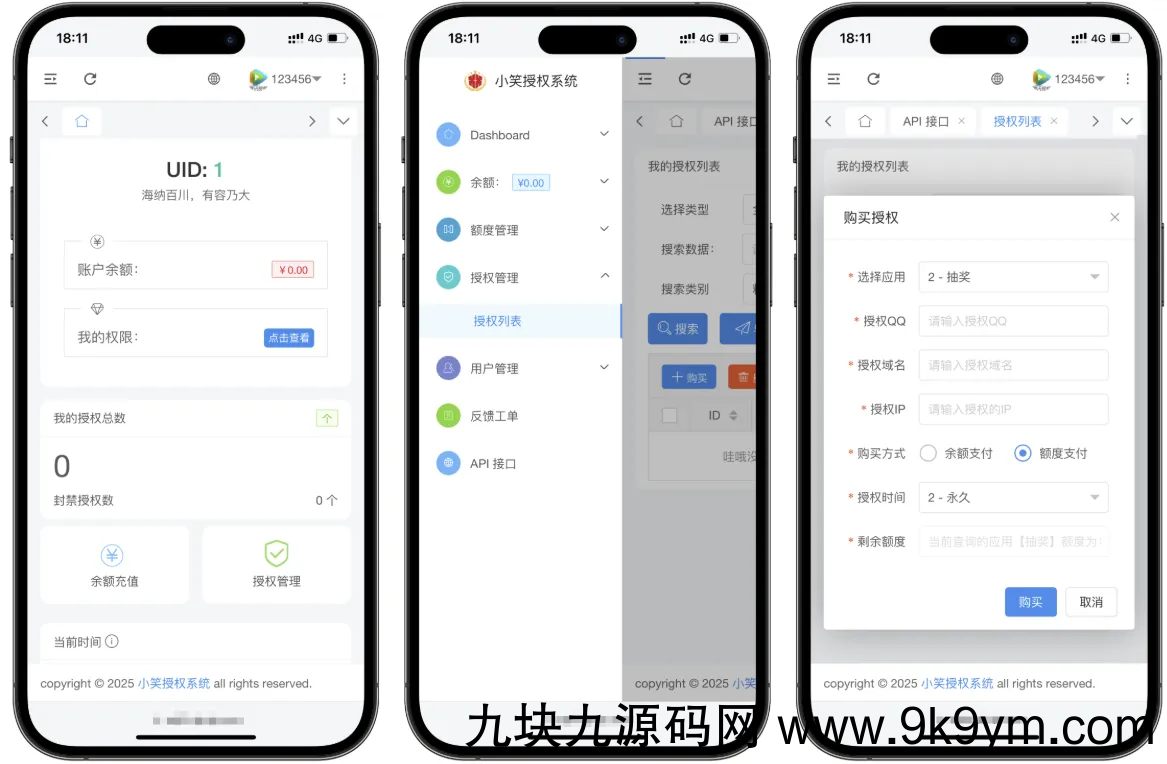 支持卡密授权,支持自助更换授权,支持API授权接口