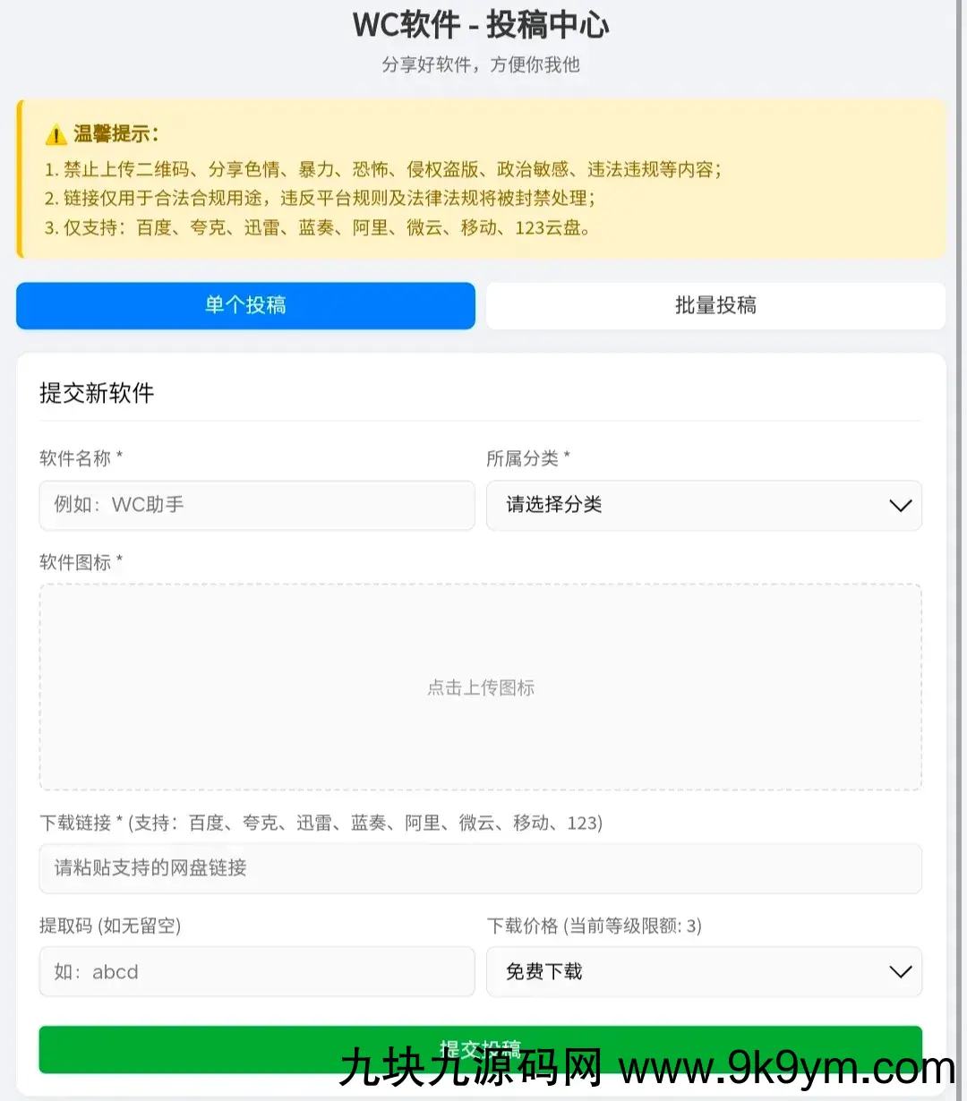 用户可以自行上传软件