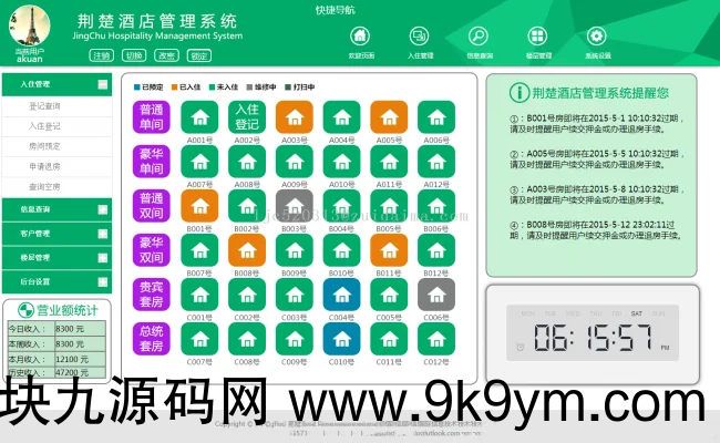 1、最基本的开房、换房、退房、续房