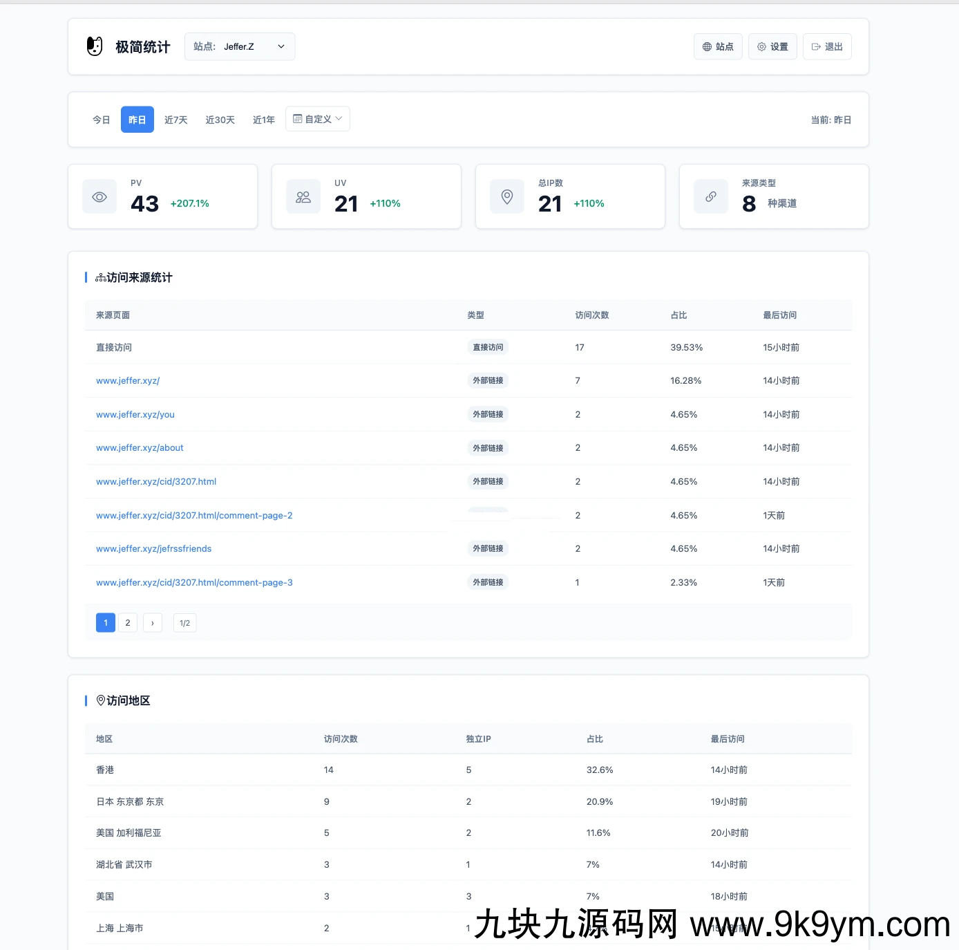一款专为博客和小型网站设计的轻量级统计系统,解决 Google Analytics 加载慢、bai度统计体验差的问题。