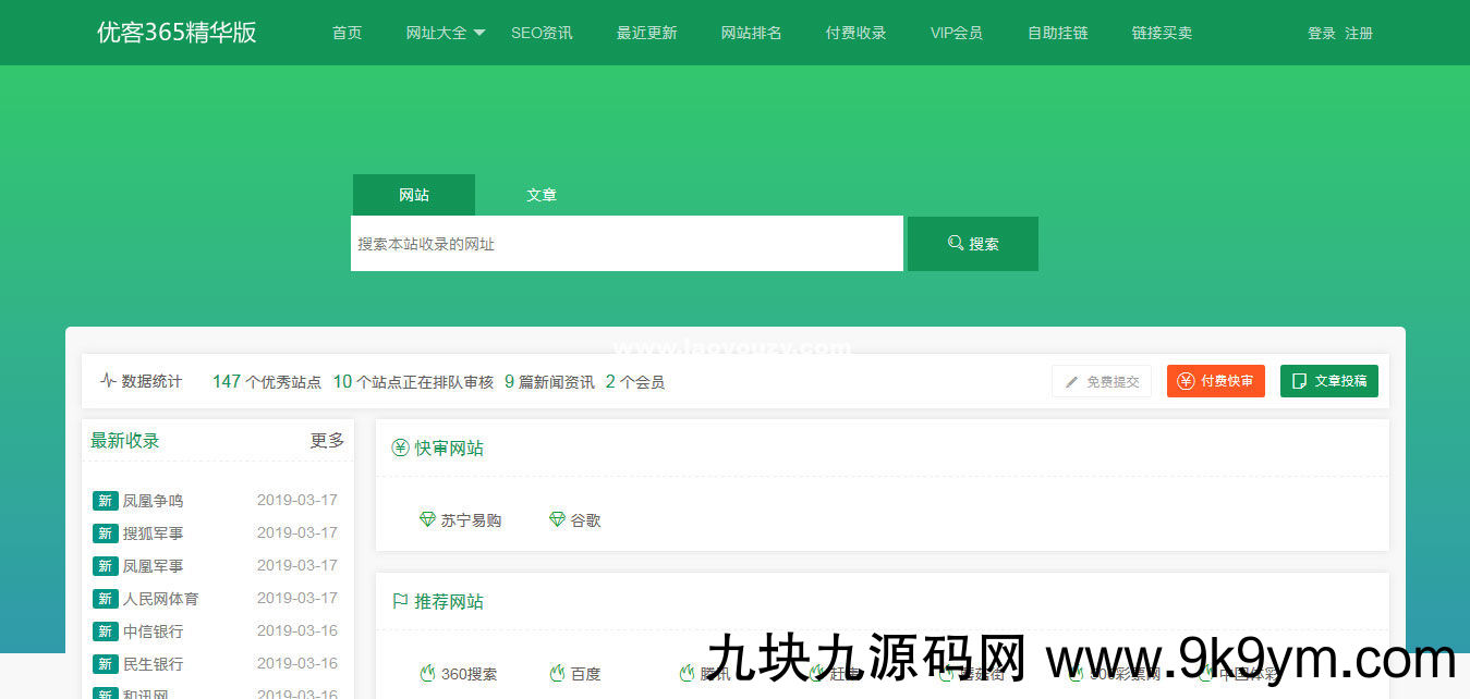 优客365网站分类导航系统是个跨平台的开源软件,基于PHP+MYSQL开发构建的开源网站分类目录管理系统,具有操作简单、功能强大、稳定性好、扩展性及安全性强、二次开发及后期维护方便,可以帮您迅速、轻松地构建起一个强大、专业的分类目录或网址导航网站。