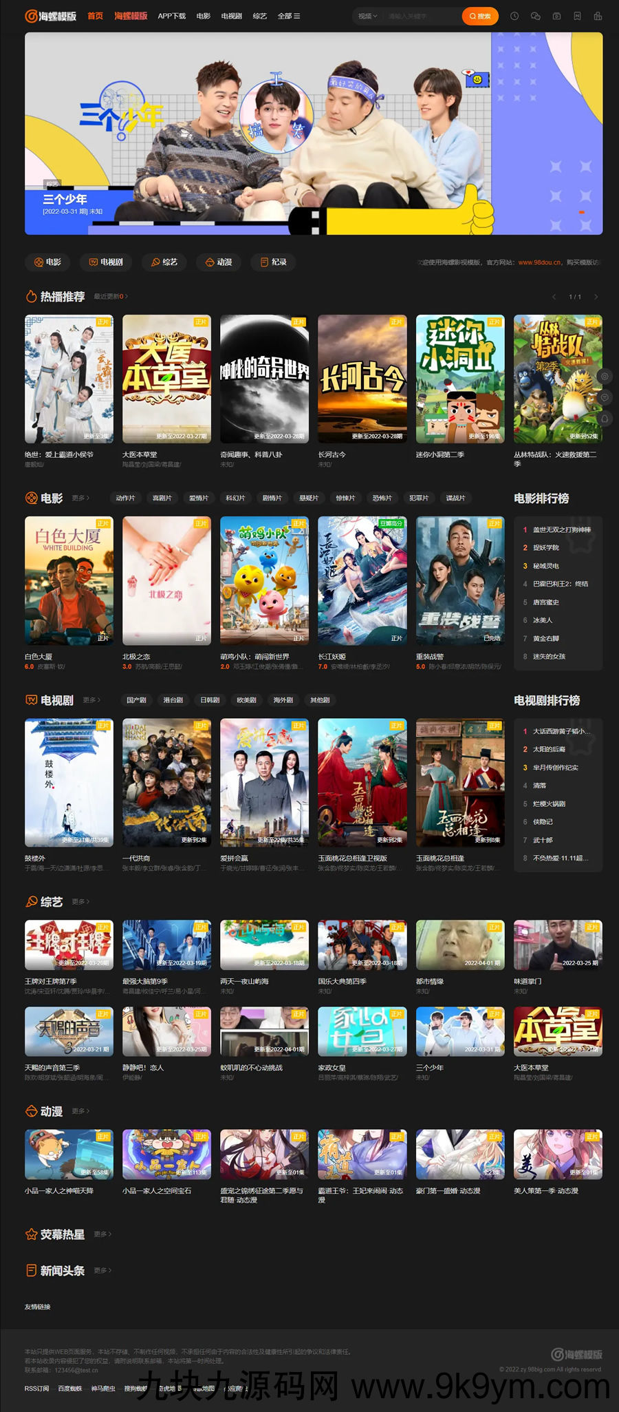 苹果cms2022新版海螺影视主题M3.1版本,这个主题我挺喜欢的,之前也有朋友给我提供过原版主题