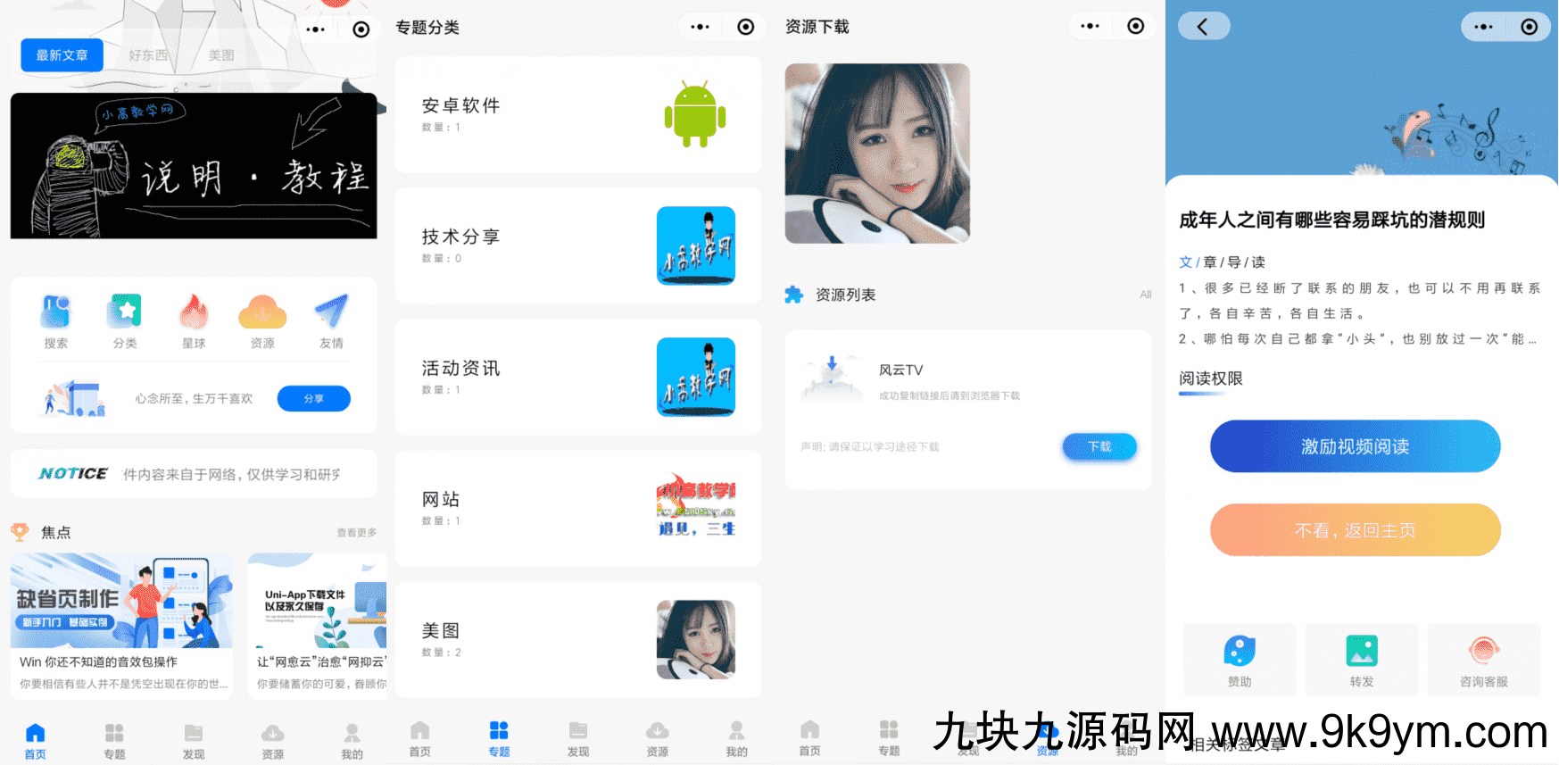 本套源码基于hbuilder制作,支持QQ小程序,微信小程序等各大平台小程序版本,小程序需要配合后端wordpres系统管理发布,带有广告功能,非常适合运营。