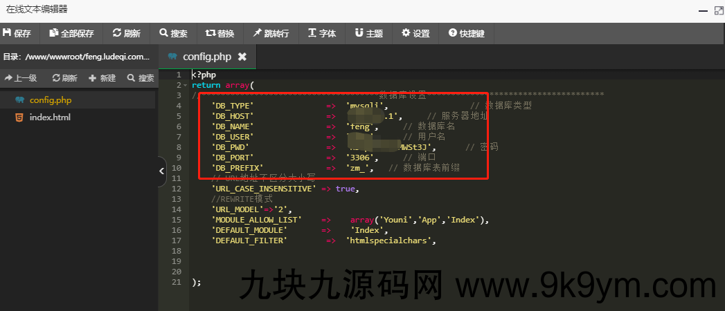 2、修改数据库Application\Common\Conf\config.php 这个文件 修改成自己的数据库信息。