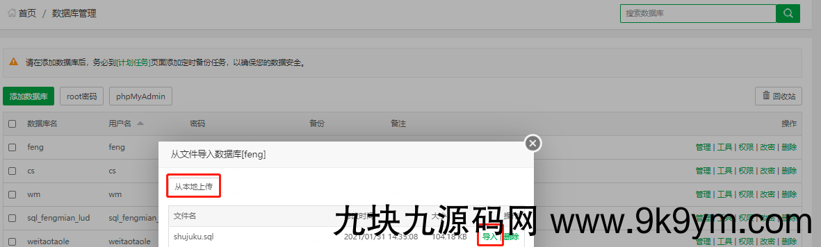 3、导入shujuku.sql数据