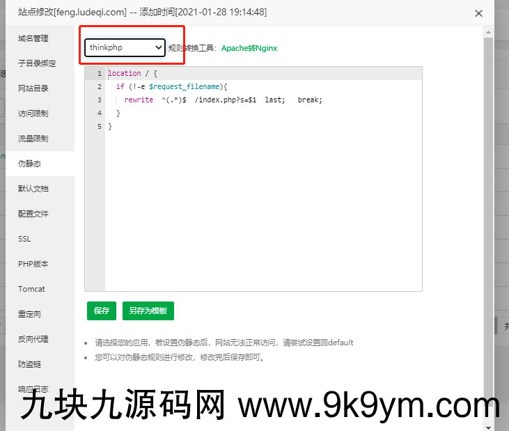 4、宝塔设置 thinkphp 的伪静态