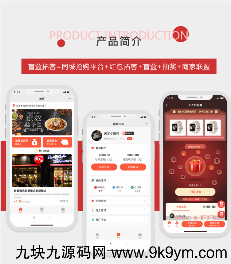 盲盒拓客,集五种玩法于一身!.盲盒一刺激!好奇心!.商家联盟一多商家推广,扩人传播覆盖群体.红包拓客一促进分销裂变.抽奖一概率事件,随机中奖.言舌动分销裂变平台!