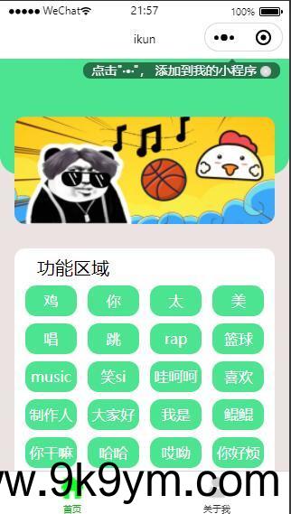 云开发坤坤鸡乐盒微信小程序源码是由坤坤铁粉ikun们发布的一款专为ios系统的用户因无法下载软件版坤坤鸡乐盒而开发的小程序版,因部分ios用户无法体验和下载此软件特地开发的小程序版鸡乐盒,听说作者也是5年的铁粉,现在特别火,我也就不多作介绍了,点击就可以发出各式各样的声音,音频资源也是来源于网络收集,程序仅限交流学习。