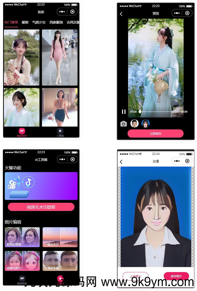 照片去水印,动漫画照片和卡通化头像功能,用户可以逐一体验。