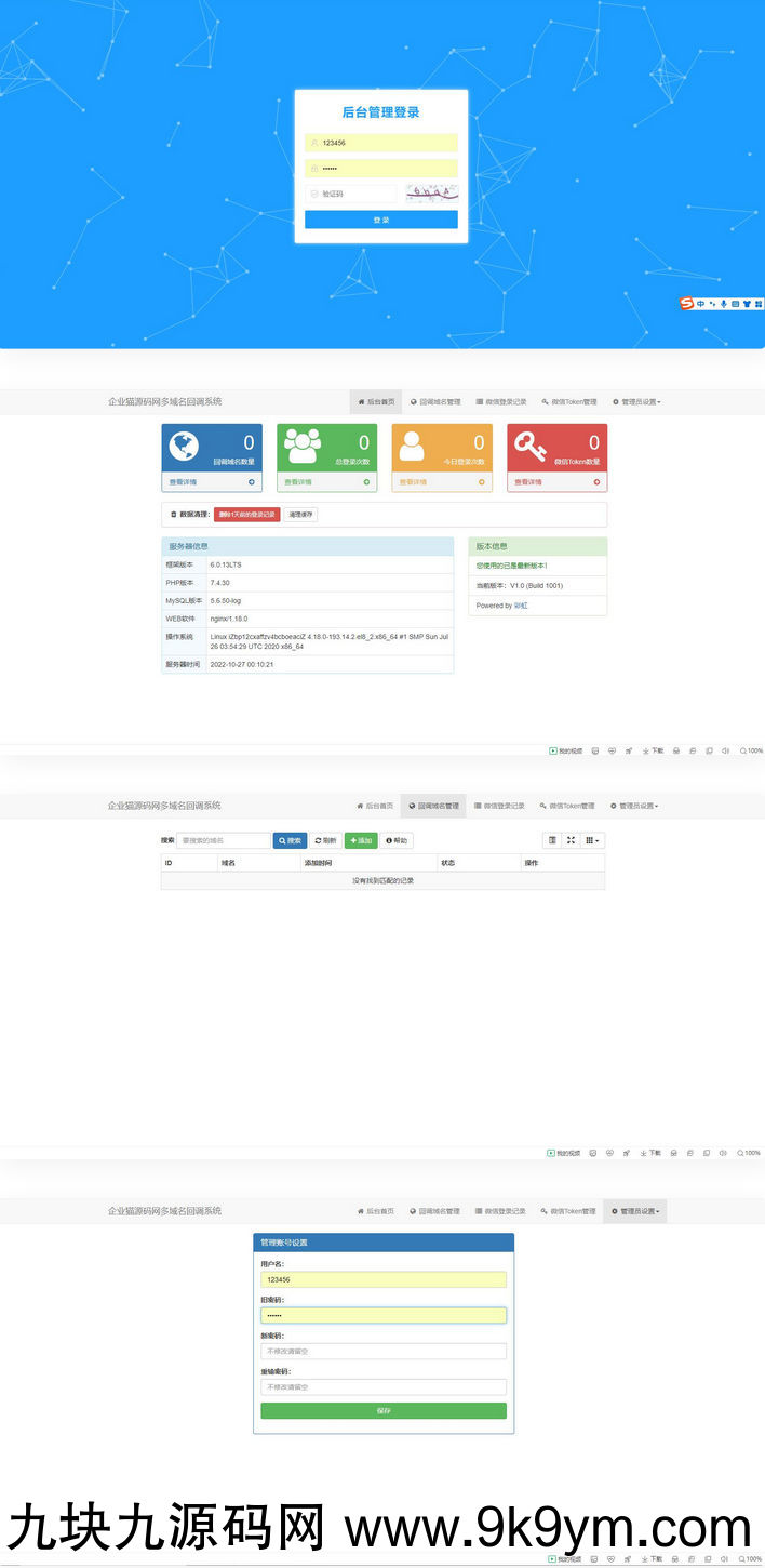 这是一款基于ThinkPHP6.0框架的微信公众号多域名回调系统。微信公众号后台默认只能授权2个网页域名,用本系统可突破这个限制,用同一个公众号对接无限多个网站。网站后台支持回调域名白名单的管理,以及登录记录的查看。本系统还有微信access_token的获取功能,可让当前站点作为中控服务器统一获取和刷新access_token,其他业务逻辑站点所使用的access_token均调用当前站点获取,这样可避免各自刷新造成冲突,导致access_token覆盖而影响业务。