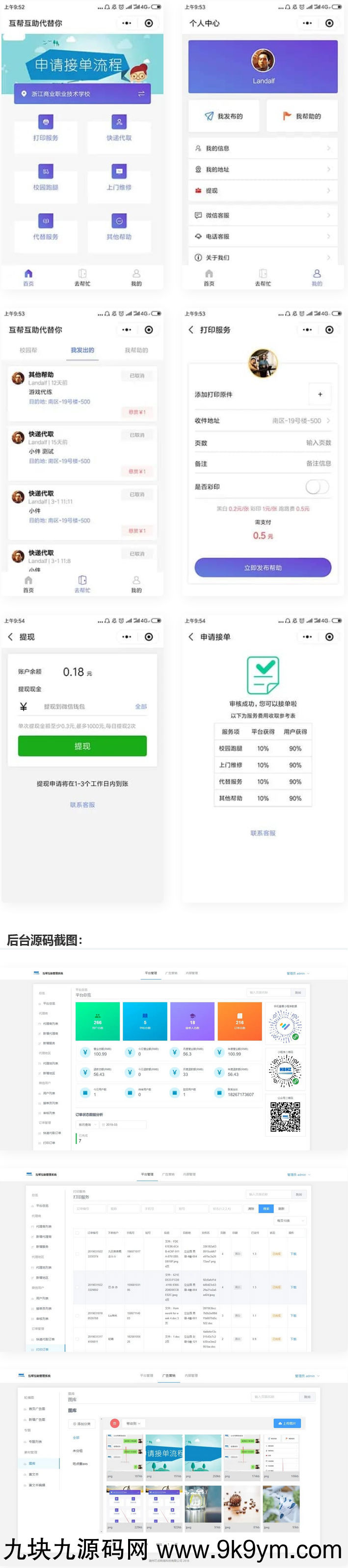 看图片挺好的一款校园跑腿小程序,但企业猫站长没接触过PM2管理器,不晓得怎么搞,但这个源码有教程,最近比较忙,等以后有时间的时候再学习下这个的搭建吧