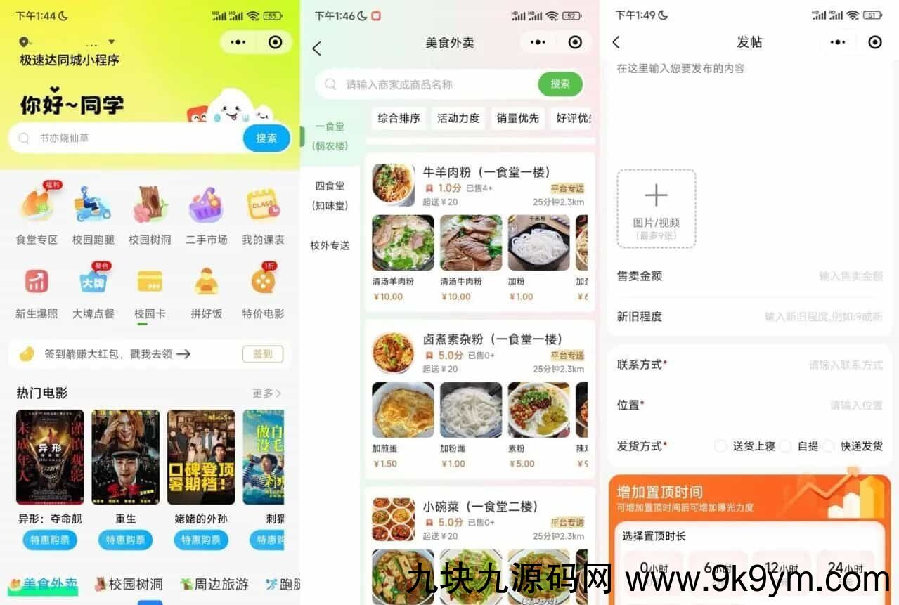 极速达同城系统是一个集合了 外卖 跑腿 电影票 快递 校园卡 驾校 社交交友 二手等的校园综合平台