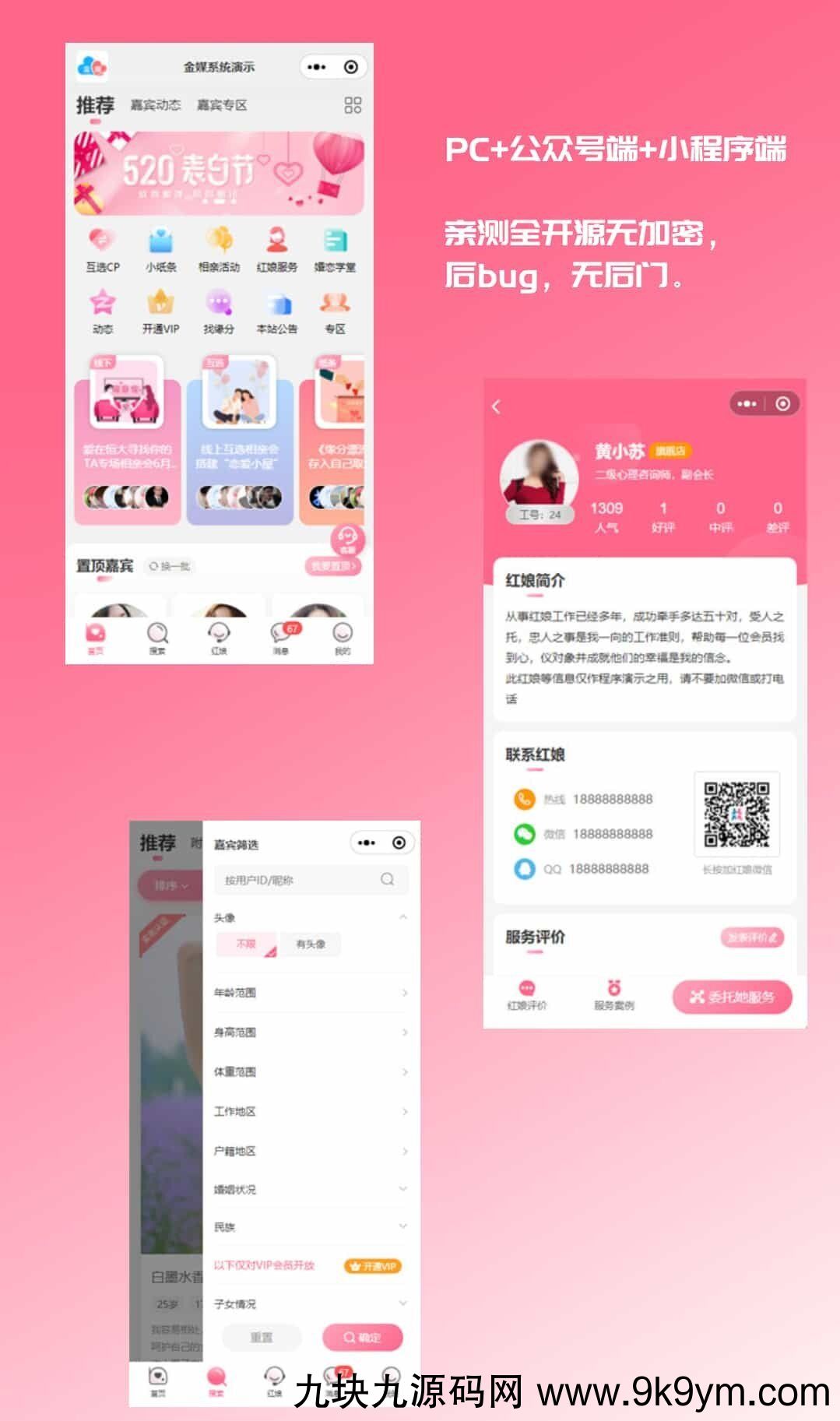 ● 新增微信小程《脱单成功案例》模块功能,同步公众号、手机H5端,数据互通