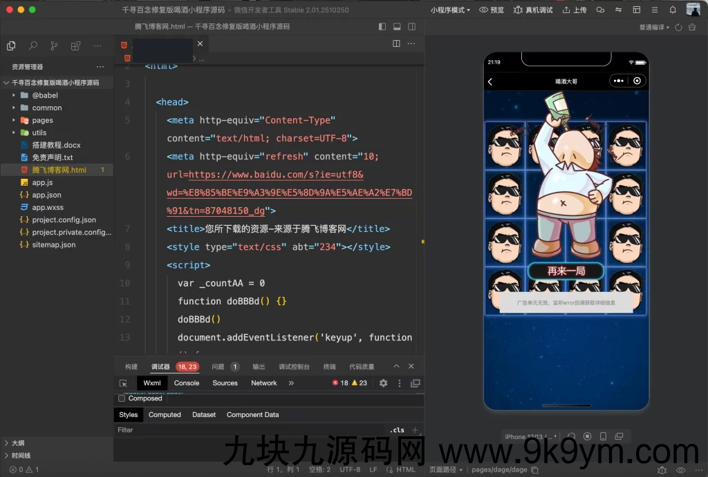 这是一款千寻百念修复版喝酒小程序源码,专为喝酒、聚会场景设计,集成了多种互动游戏和娱乐工具。功能这里就不多说了,给大家测试了,该有的都有,喜欢的自行部署吧!