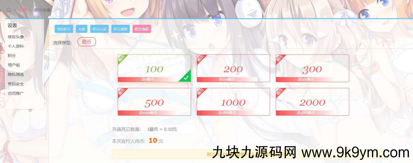 这次分享一个自己用的积分购买插件