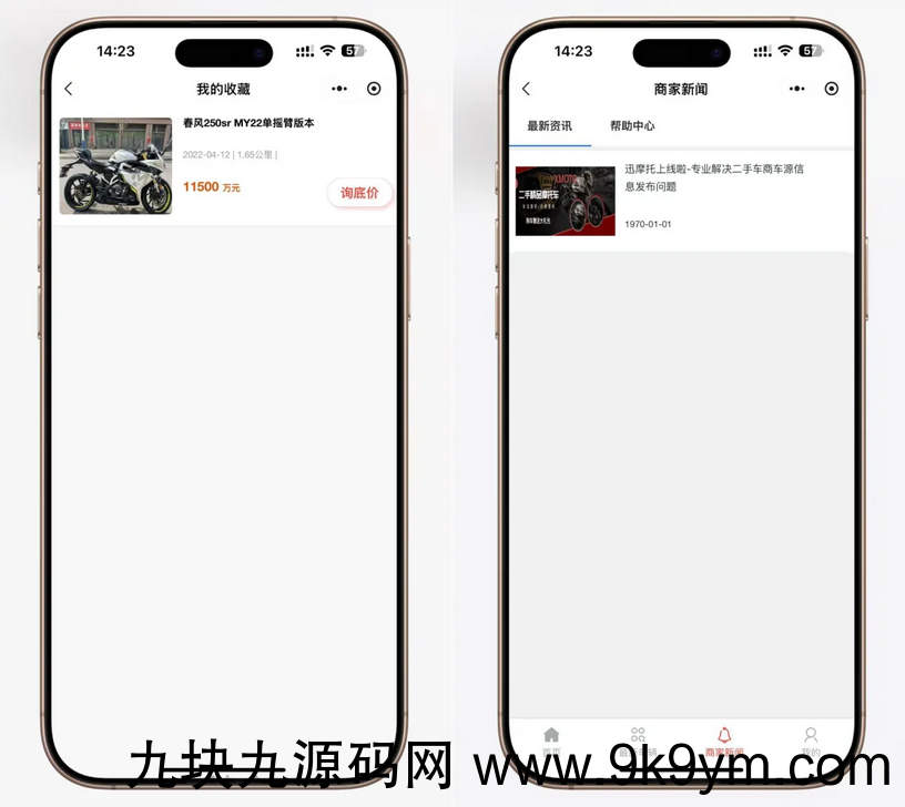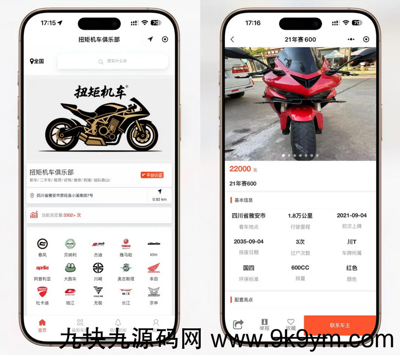 主要功能模块: 店铺展示、车型管理、摩托车信息发布、用户联系